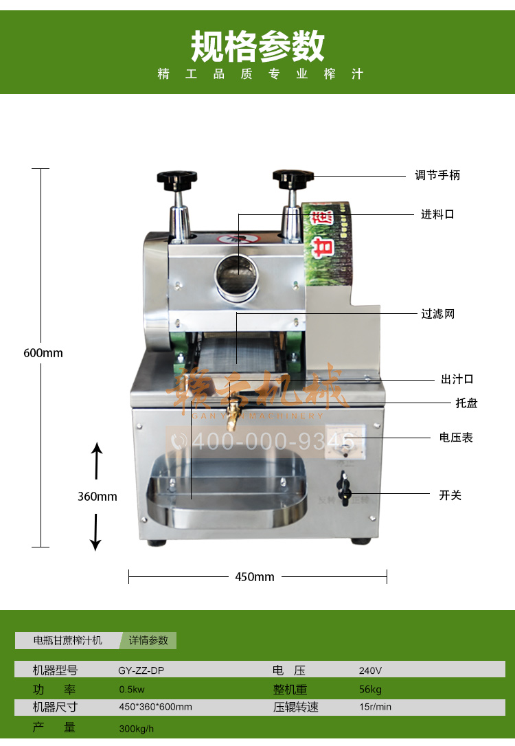 本廠生產的榨液機可以榨甘蔗、生姜汁做姜糖,生姜液調蛋是婦女的補身佳品,生姜液調味做面條能開胃口。全新升級電瓶甘蔗榨汁機。