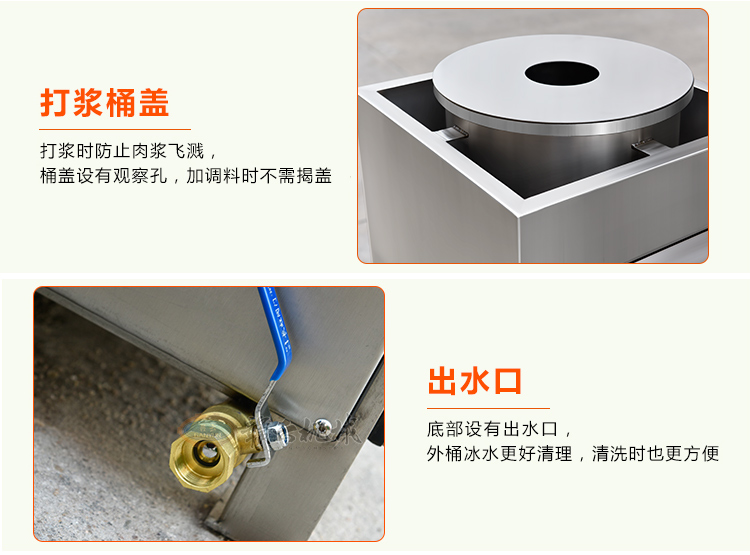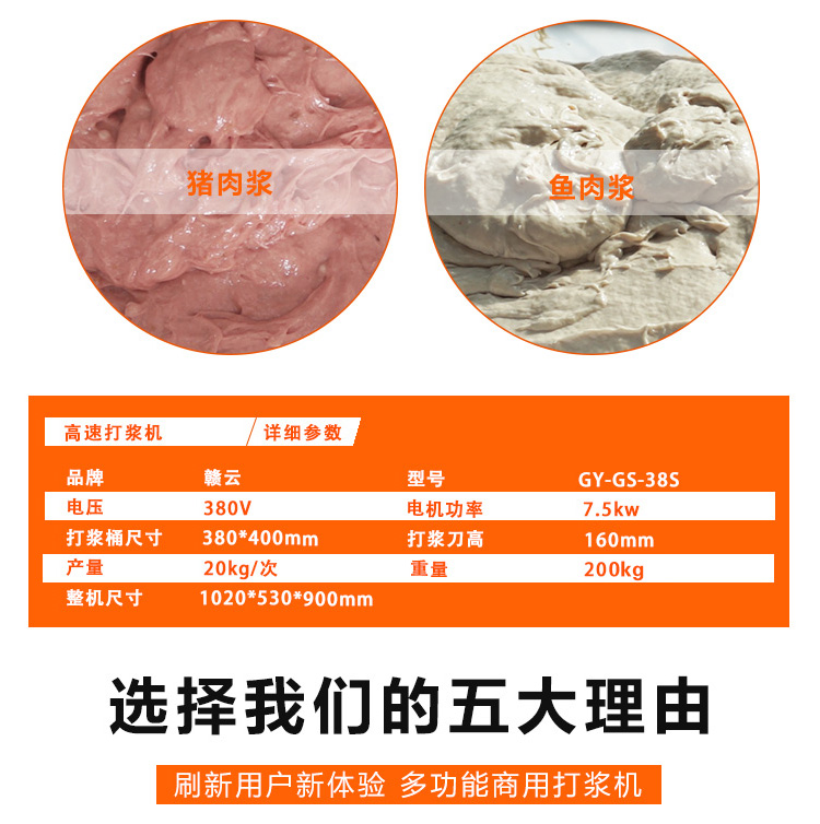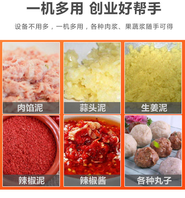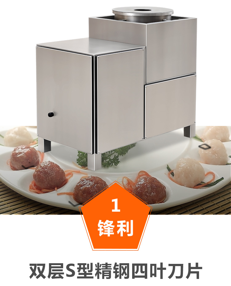 多功能肉丸打漿機擁有高速旋轉,達到快速碎食效果,讓打漿更細膩,讓您告別傳統手工剁肉攪肉打漿,將食材放入打漿機器入料口,食材由上至下翻轉打碎,讓肉餡不松散,細膩有勁道,此款38制冷高速肉丸打漿機,開機2-3分鐘即可完成打肉、配料、攪拌成漿。針對魚肉、豬肉、牛肉、等肉類纖維組織、改善了肉質脂肪纖維,生產出來的丸子外表光滑細嫩、低脂、口感爽脆,彈性好,韌性好,是潮州魚、肉丸的打漿設備。