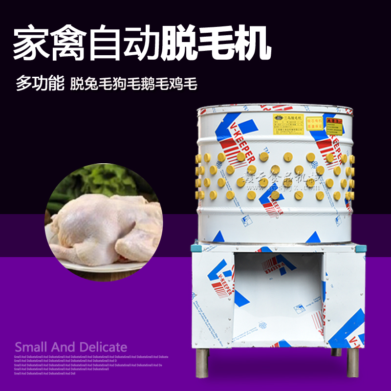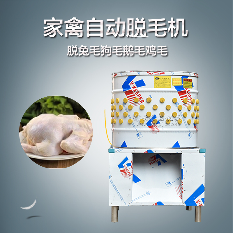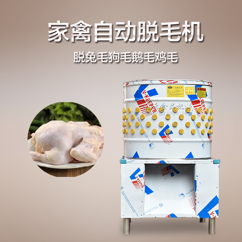 家禽脫皮機,用于雞,鴨宰殺后的家禽自動脫毛,能一次性脫羽毛,細毛,及其表皮污垢,使工作的人們從又臟又累的手工勞作中解脫出來,極大的提高工作效率。本機操作簡單,省力,省時工作效率相當于十多個人的手式勞動,深受各酒店,飯堂及農產品工戶的欣賞。
