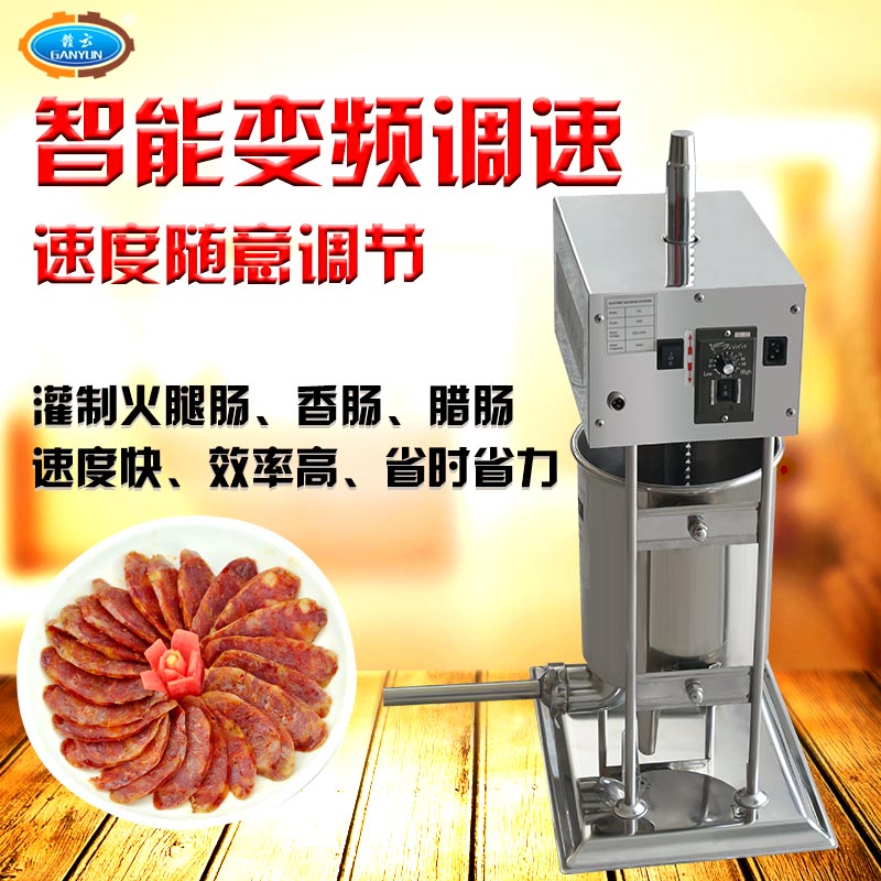 冬季灌腸新添專業灌腸設備,贛云牌立式不銹鋼電動灌腸機,專業灌制各種腸類,如臘腸、香腸、火腿腸、親親腸。變頻速度可調,灌腸讓你隨心所欲,整機采用全齒輪優質拉桿升降系統設計.腳踏開關隨意控制,配合自動升降系統及變速可調,灌腸速度快,效果好。