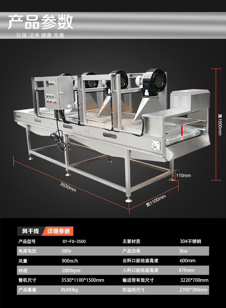 果蔬加工機械->凈菜加工設(shè)備->大棗辣椒清洗風(fēng)干線  | |||||||