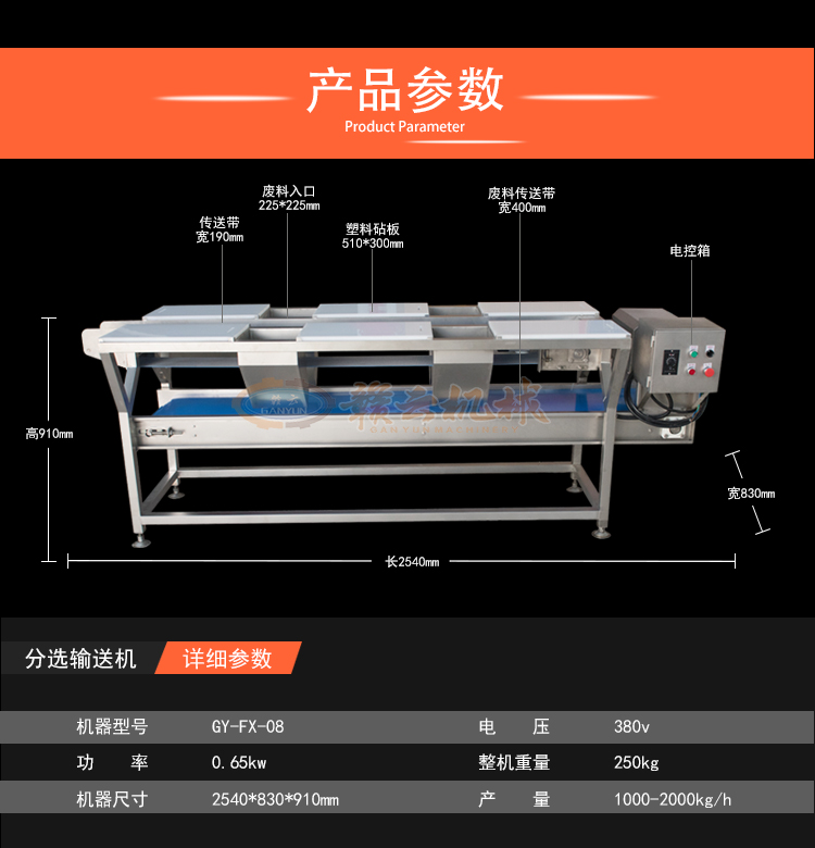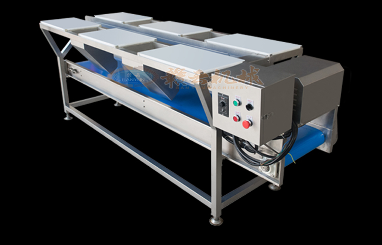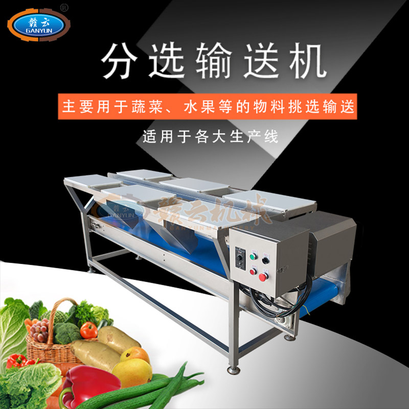 贛云牌FX-08型雙層挑選機,也叫分選機,模擬手工前期挑選工序設計二次,操作臺有上下分選輸送帶,上輸送帶將物料輸出至切菜機內進行切割工序,下輸送帶將廢料輸送至另一端收集出來。亦可根據客戶需求定制多層分選,定制加長加寬,以符合中央廚房加工需求之用。咨詢電話400-000-9346