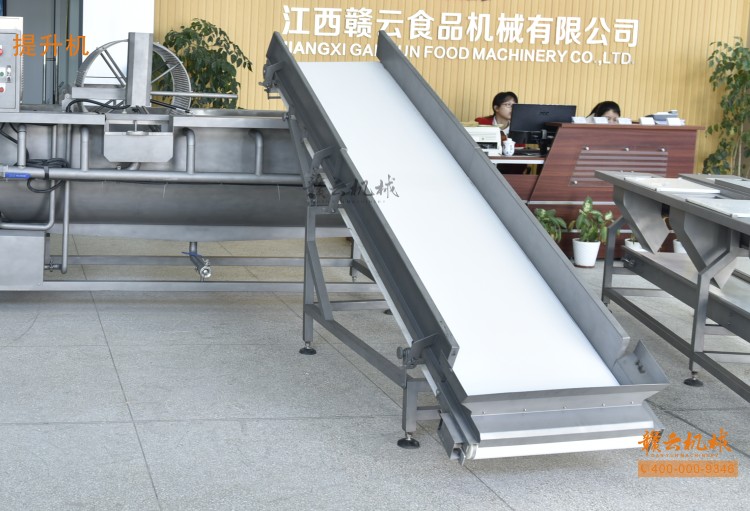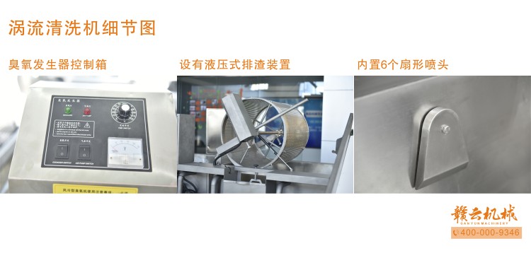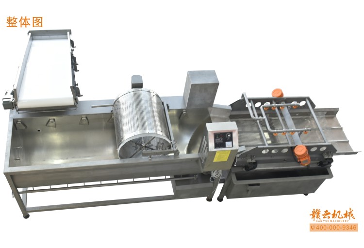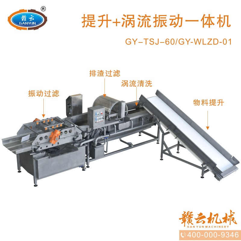 本機由皮帶提升機+渦流振動清洗機組合而成,皮帶提升機主要用于將切割出來的蔬菜提升至渦流清洗水槽內,經由6個扇形噴頭高壓噴水形成水槽內水流成渦流狀而命名為渦流清洗,渦流清洗機上端設置有液壓式排渣滾筒裝置,并引導蔬菜向高頻振動機方向移動,此外渦流清洗機還裝置有臭氧發生器,主要用于去除農藥殘留之用,高頻振動機上端設置有多個噴頭,對蔬菜進行二次沖洗,達到清洗干凈的作用。振動篩振動加快抖落水珠和細小顆粒,使得所清洗出來的蔬菜能直接用于真空包裝或食堂熟食加工之用。與本套設備配合使用的還有前期的數字切菜機和蔬菜分選挑選機。贛云機械,掌握肉丸加工成套設備,中央廚房凈菜設備核心技術。咨詢電話400-0009346