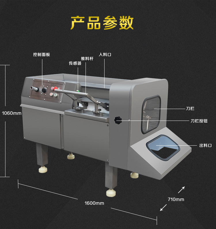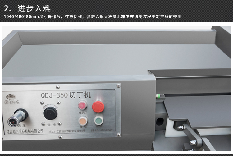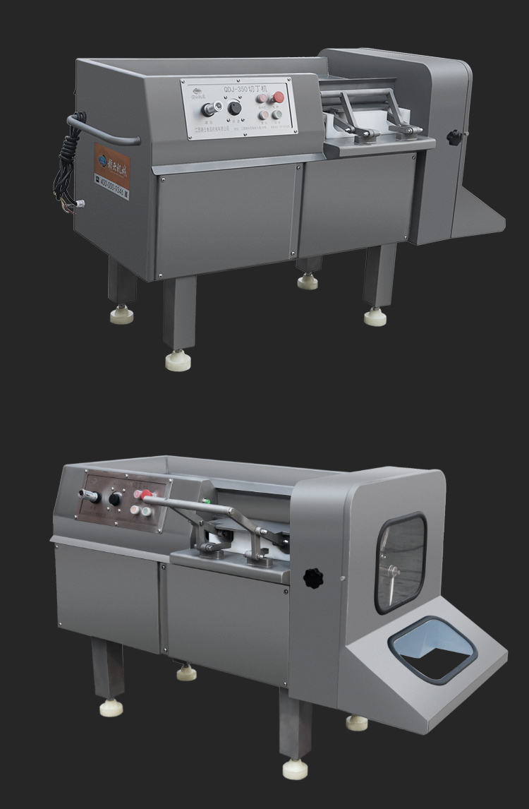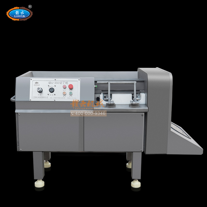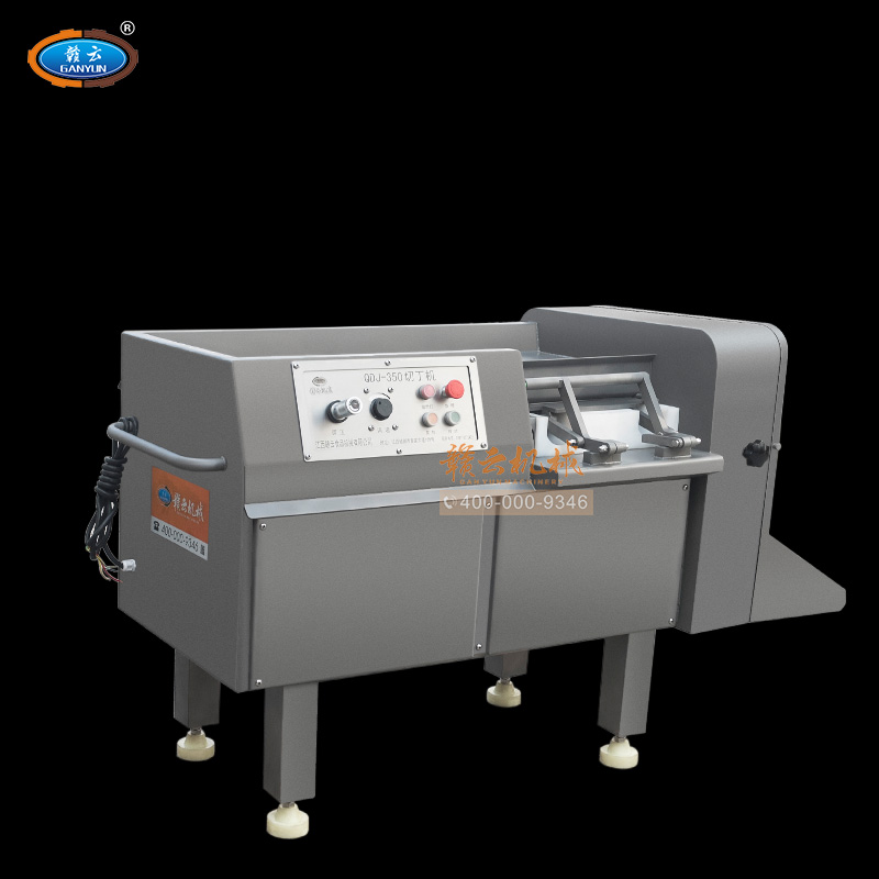 贛云350型切肉丁機,采用304不銹鋼噴砂處理技術,裝備優質刀組,利用流水線條設計,配合激光雕刻控制面板,整體外形美觀大氣。液壓步進式推料自動切割,推料速度旋鈕可調,拆增刀片可切出多種規格肉丁、肉條、肉片。是肉類食品加工切丁專用設備。
