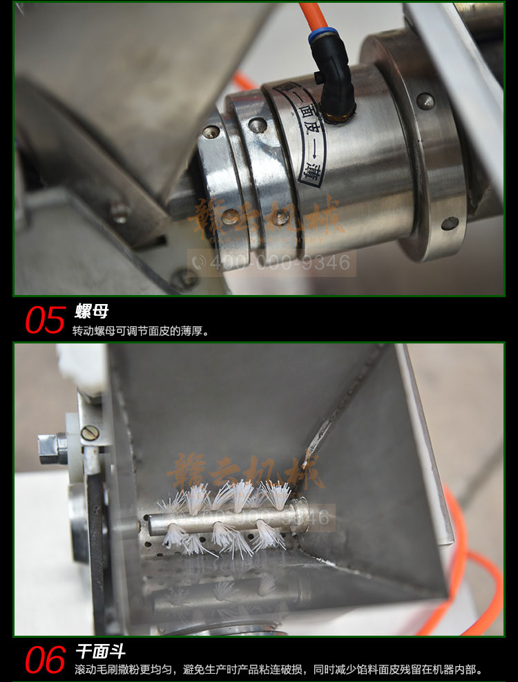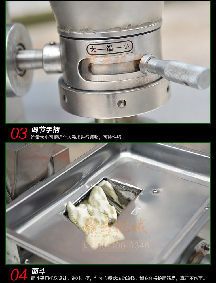 食品級材質(zhì)全自動餃子機,操作簡單,容易入門,生產(chǎn)效率:7200個/h,讓您省工少力,該款電動餃子機可生產(chǎn)肉餡、肉菜混合餡、全菜餡餃子等各種風味i不同的餃子!口味隨心搭配