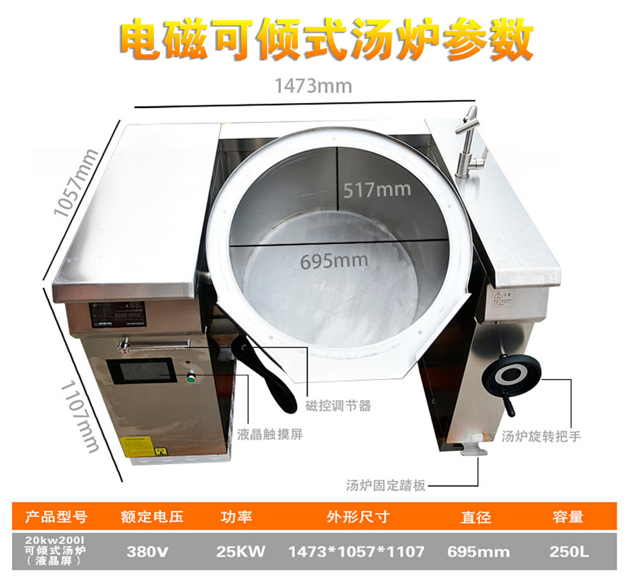 主頁-> 中央廚房設備->熱調理區設備->20KW200L可傾式湯爐(液晶屏)