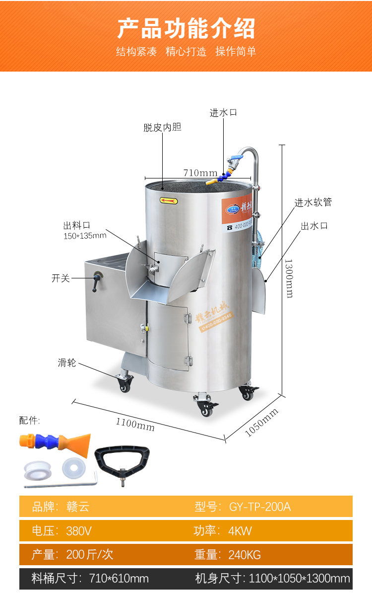 可用于毛芋、土豆、紅薯等果蔬的脫皮和清洗