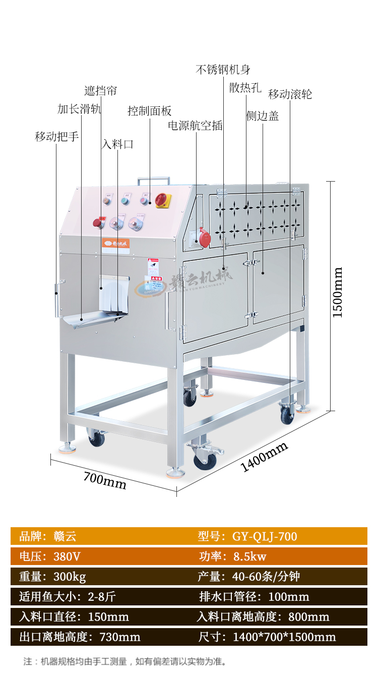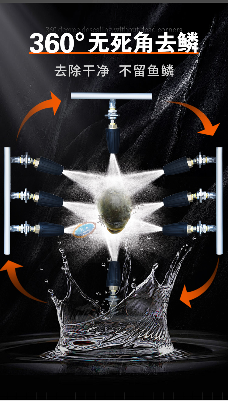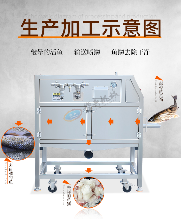 通過水壓方式去除多種魚類魚鱗,去魚鱗干凈、不傷魚皮和魚鰭。