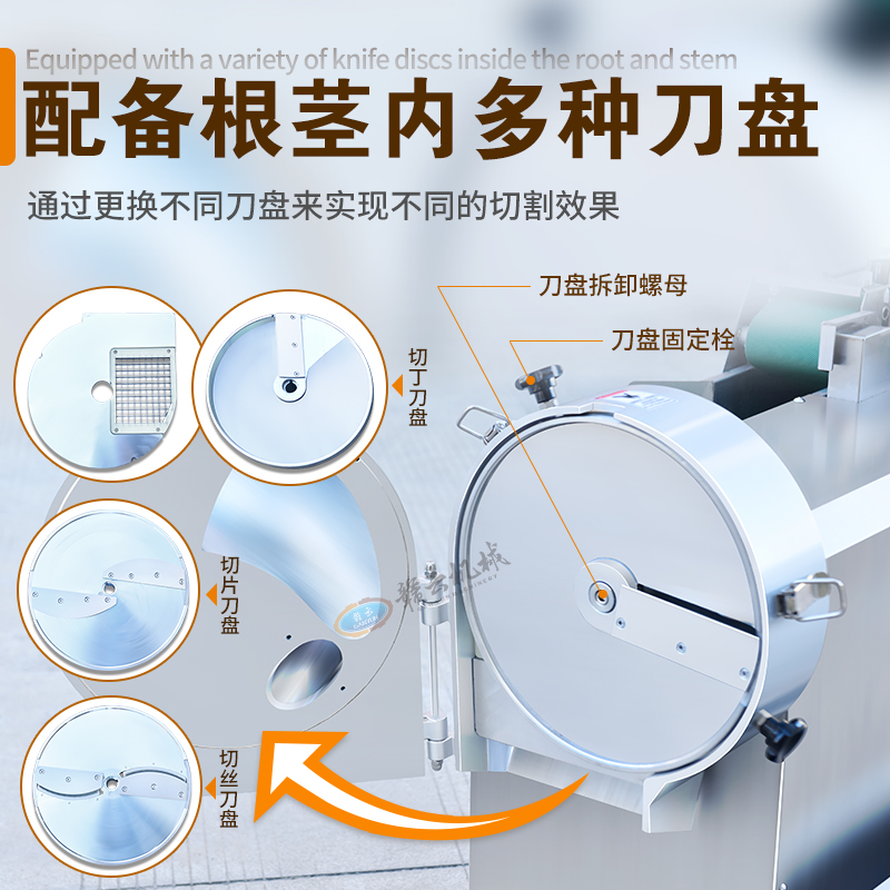 用于葉菜、球莖類蔬菜的切段、切塊、切片、切絲、切丁的快速精準切割。