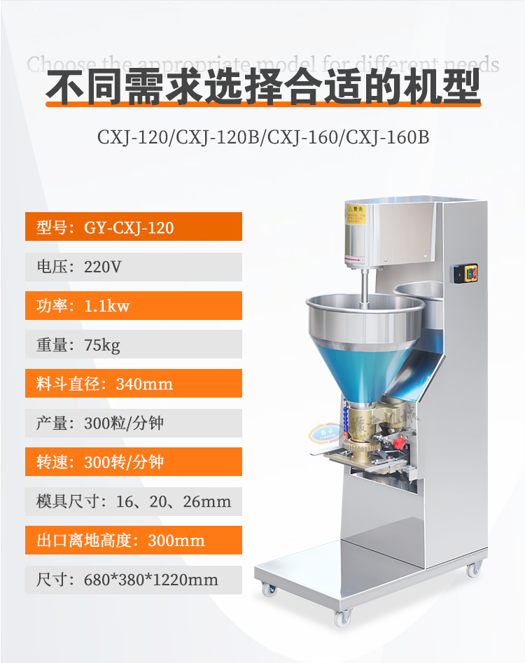 用于高效成型各種肉丸、魚丸、牛肉丸、蝦丸、素丸、豬肉丸、羊肉丸、雞肉丸等,形狀統一效果好。