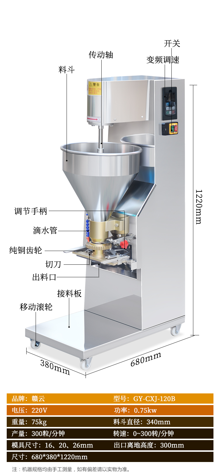 主頁-> 肉丸成型機械->實心肉丸機->120調速肉丸成型機