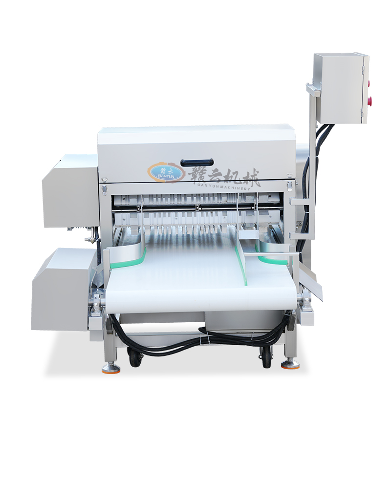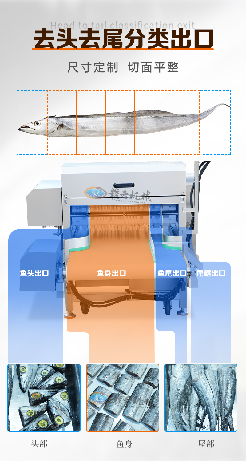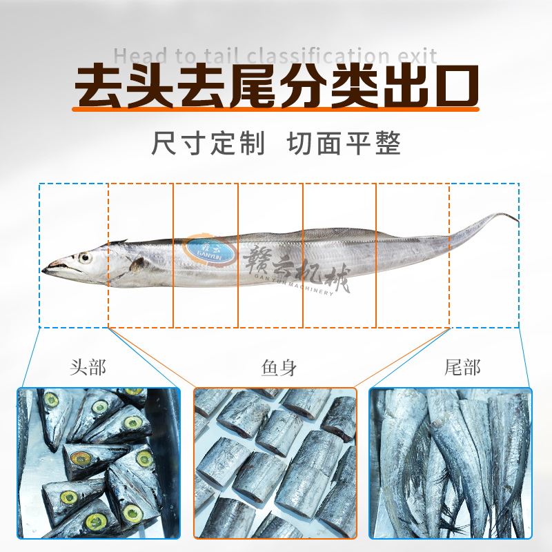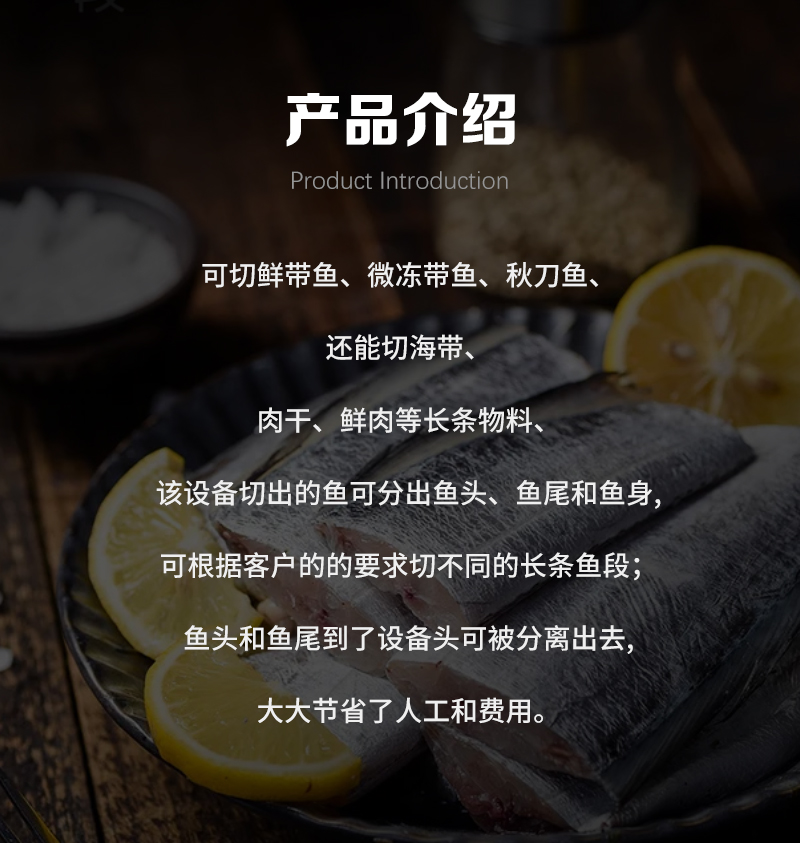 適用于鮮帶魚、微凍帶魚、秋刀魚、鱈魚、鲅魚、海帶、肉干、長條果蔬、鮮肉等長條物料快速切段。