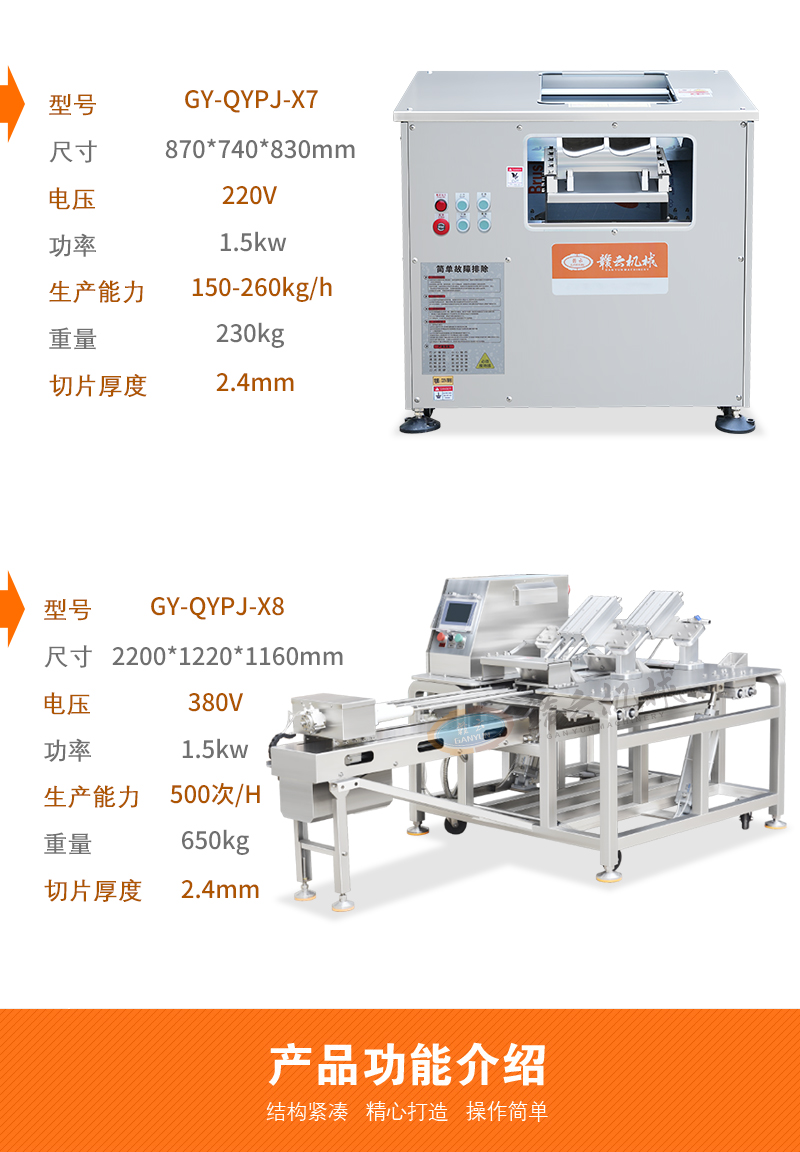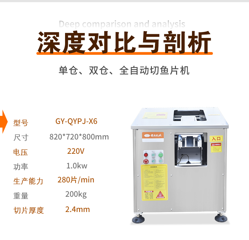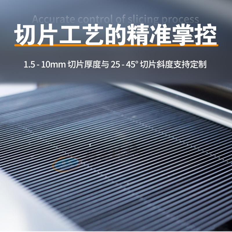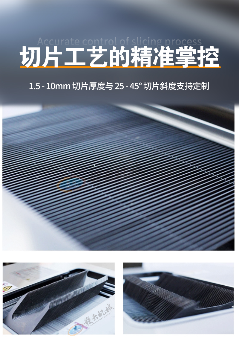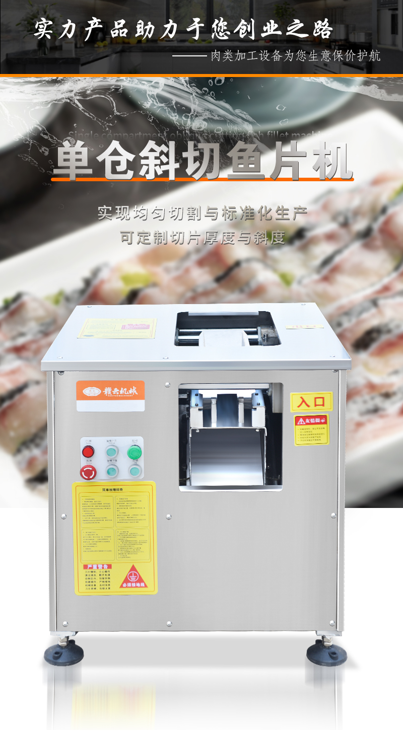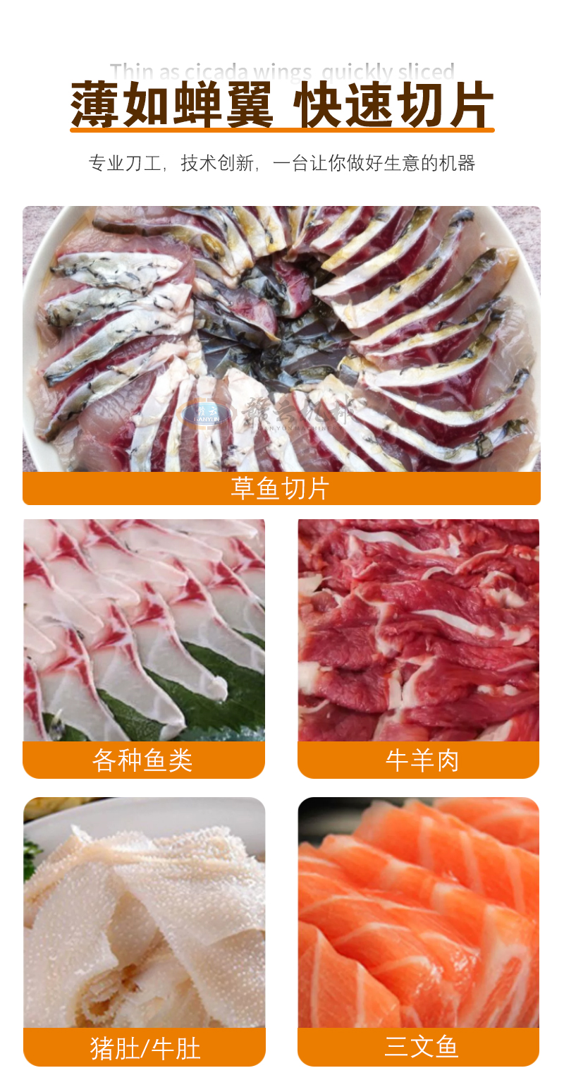 適用于加工斜切三文魚、魷魚、酸菜魚片、豬肝片、牛肉片等食材。