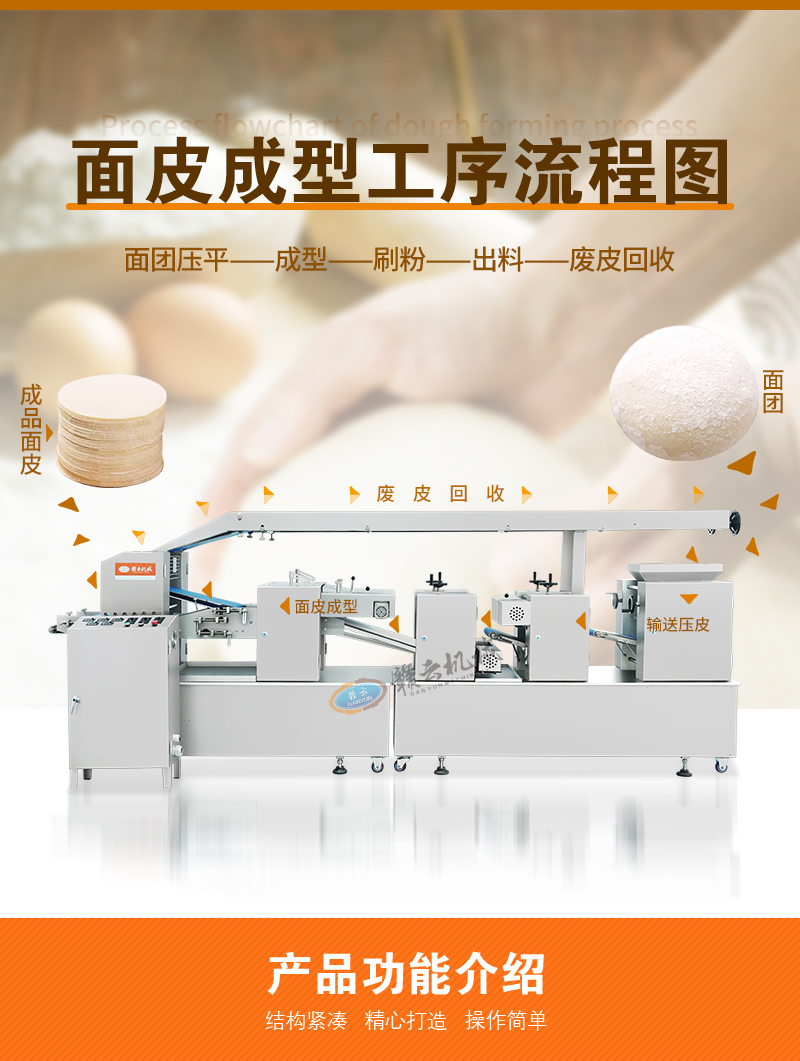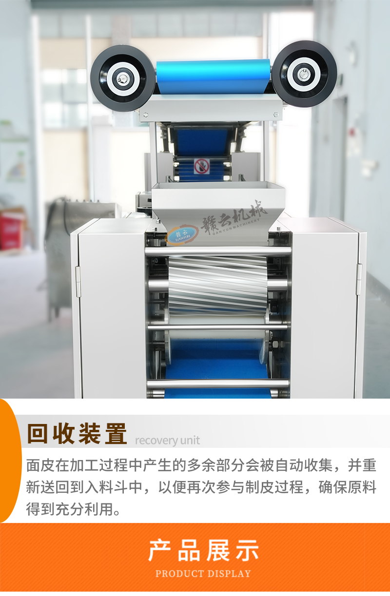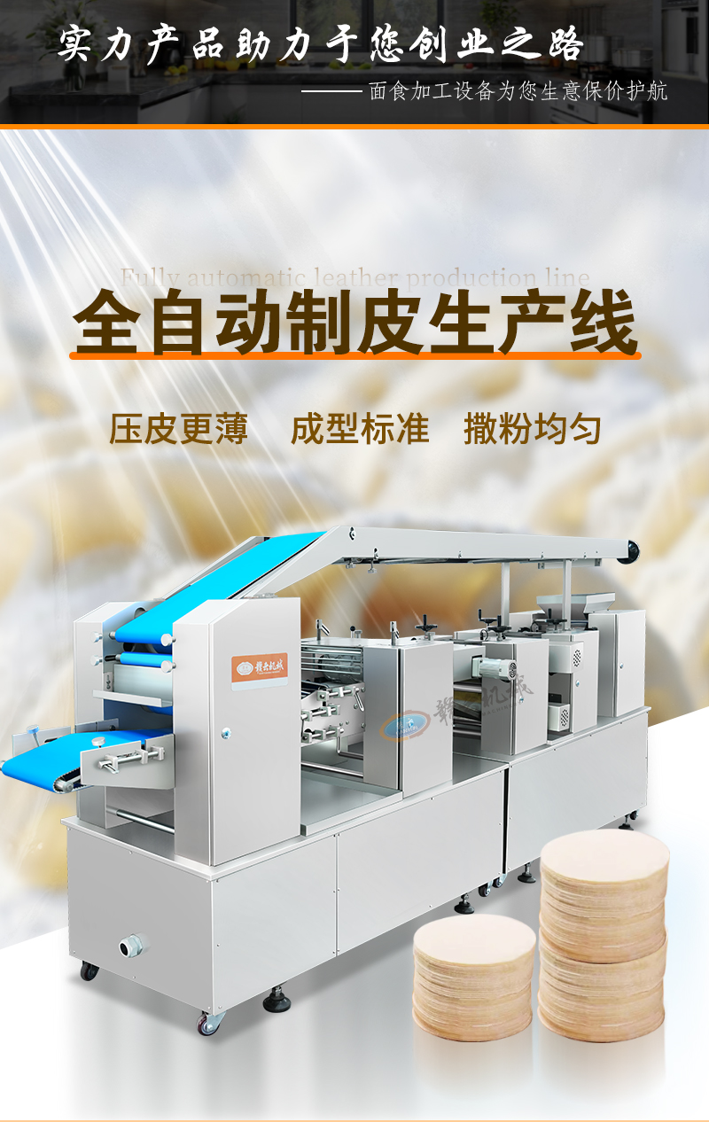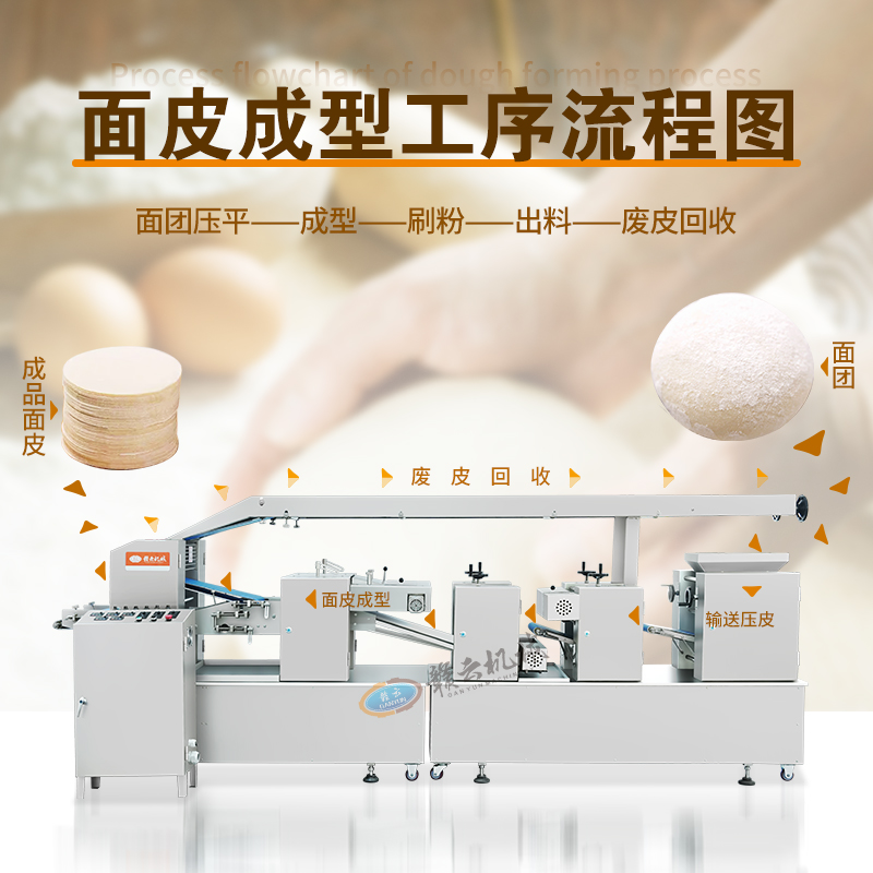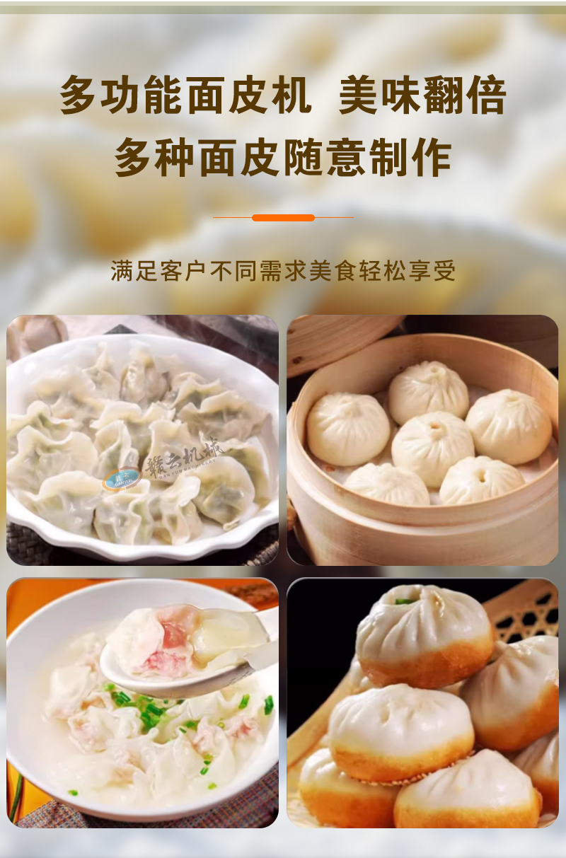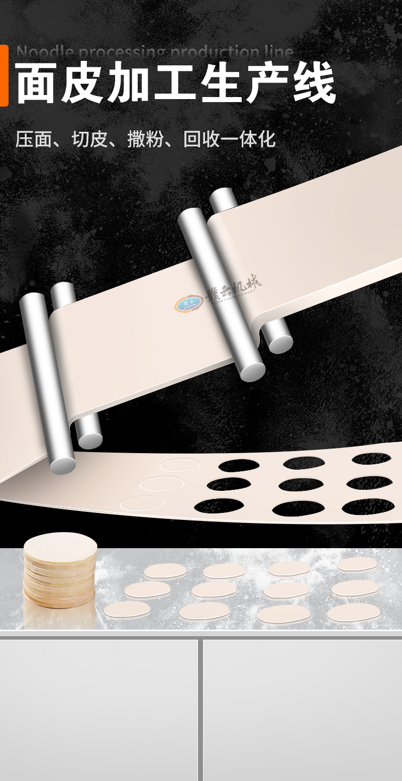 用于全自動面皮生產,可加工生產餃子皮、餛飩皮、燒麥皮、包子皮等。