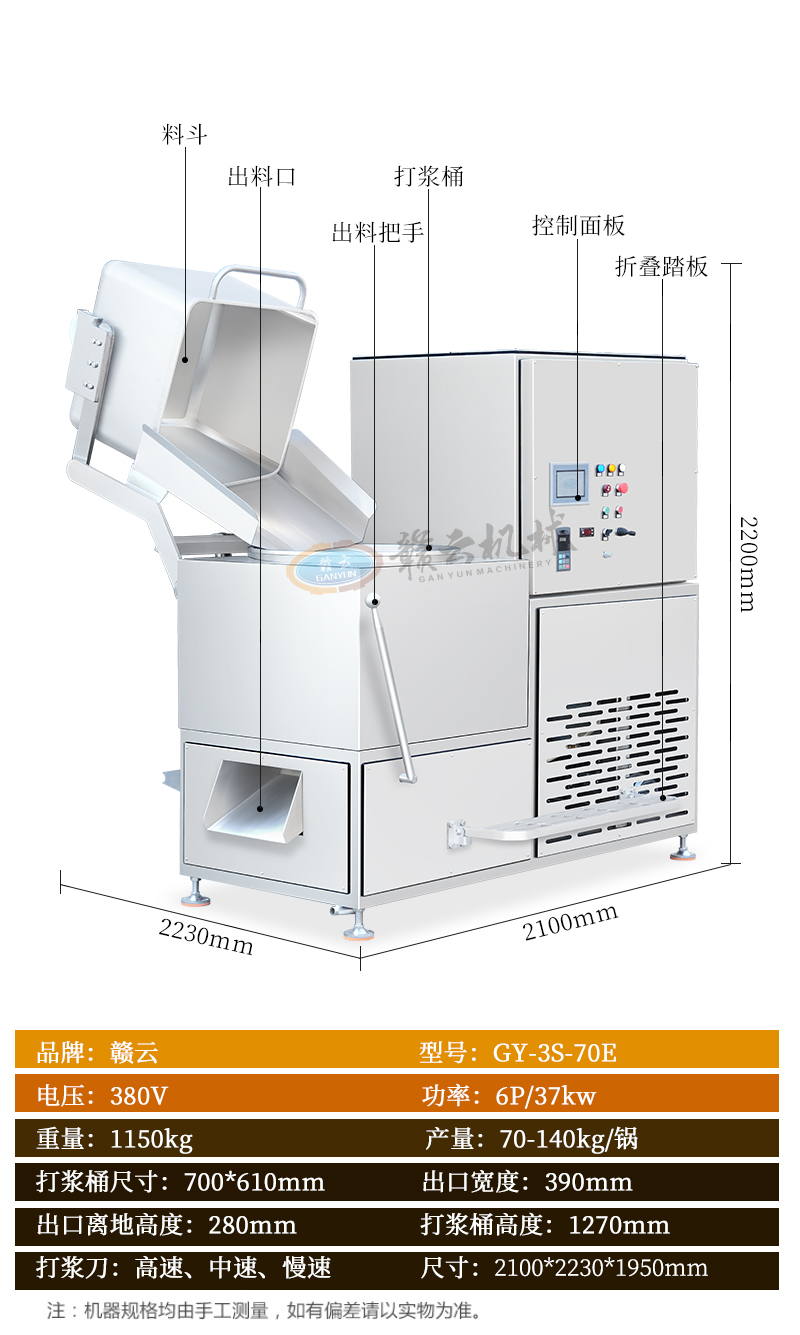 主頁-> 肉丸打漿機械->調速打漿機->70桶三速制冷打漿機(帶自動上料)