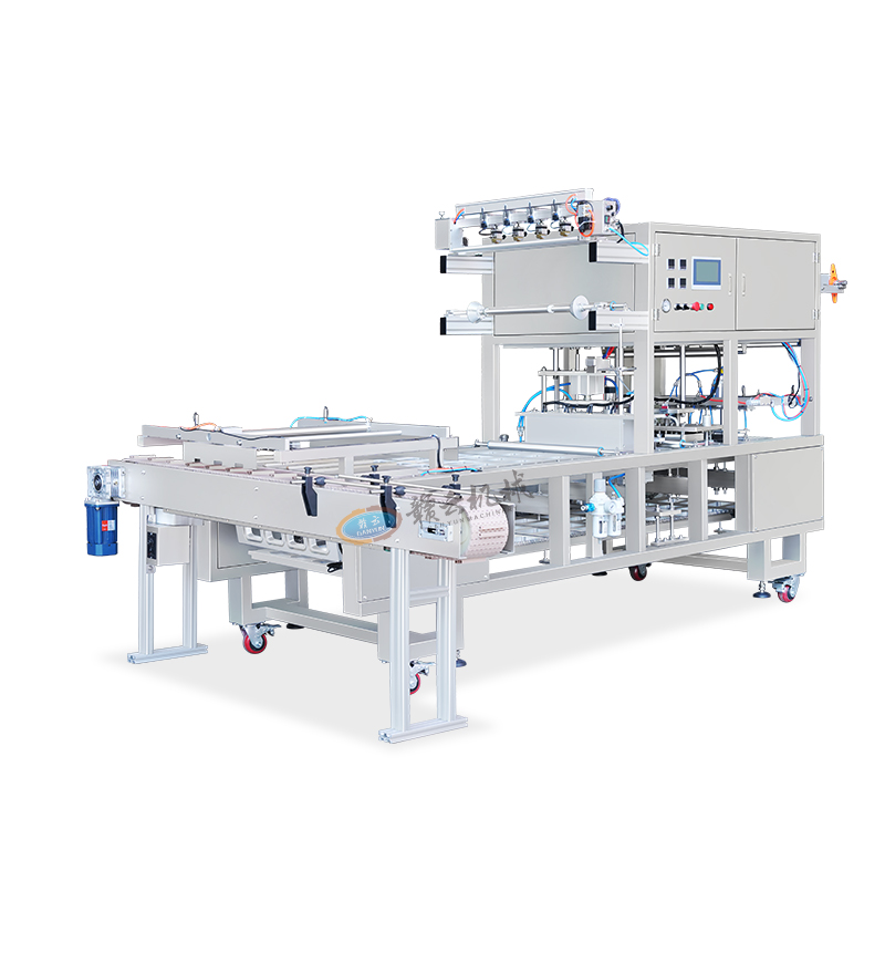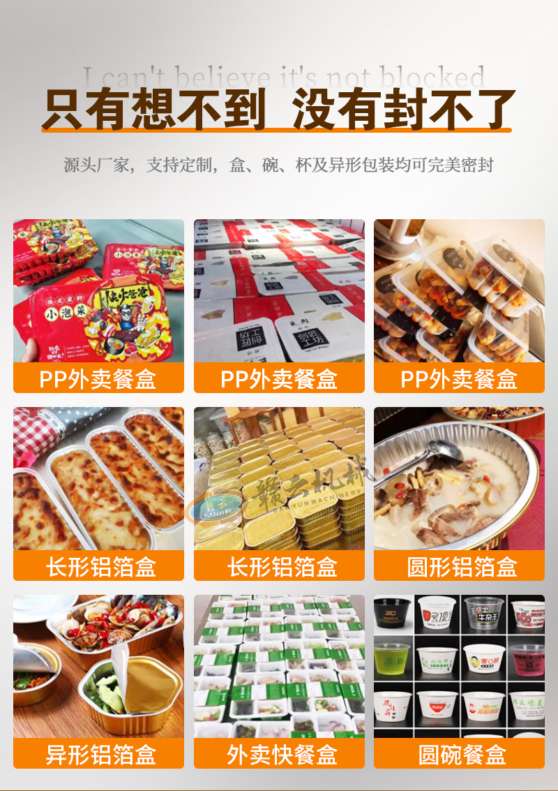 專為預制菜、快餐盒飯、鮮食、小吃等設計,實現全自動放盒、封口、切膜,支持異形包裝定制,提升鎖鮮效率與美觀度。
