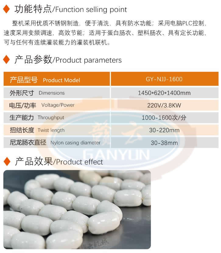 主頁-> 肉制品前處理->專用灌腸設備->1600高速扭結機