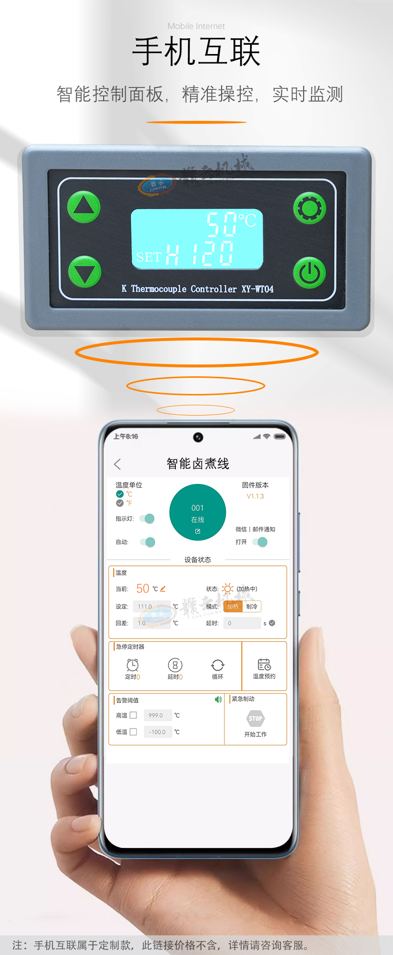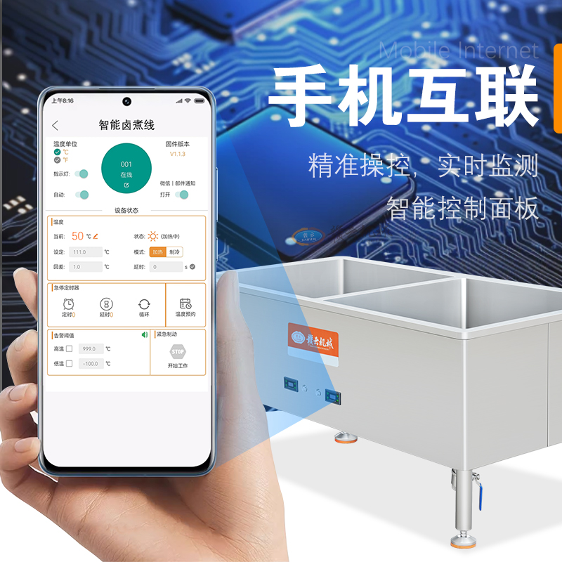適用于各種肉丸的定型和熟化、肉類果蔬的熬煮鹵燉,連通手機,實現(xiàn)智能互聯(lián)。