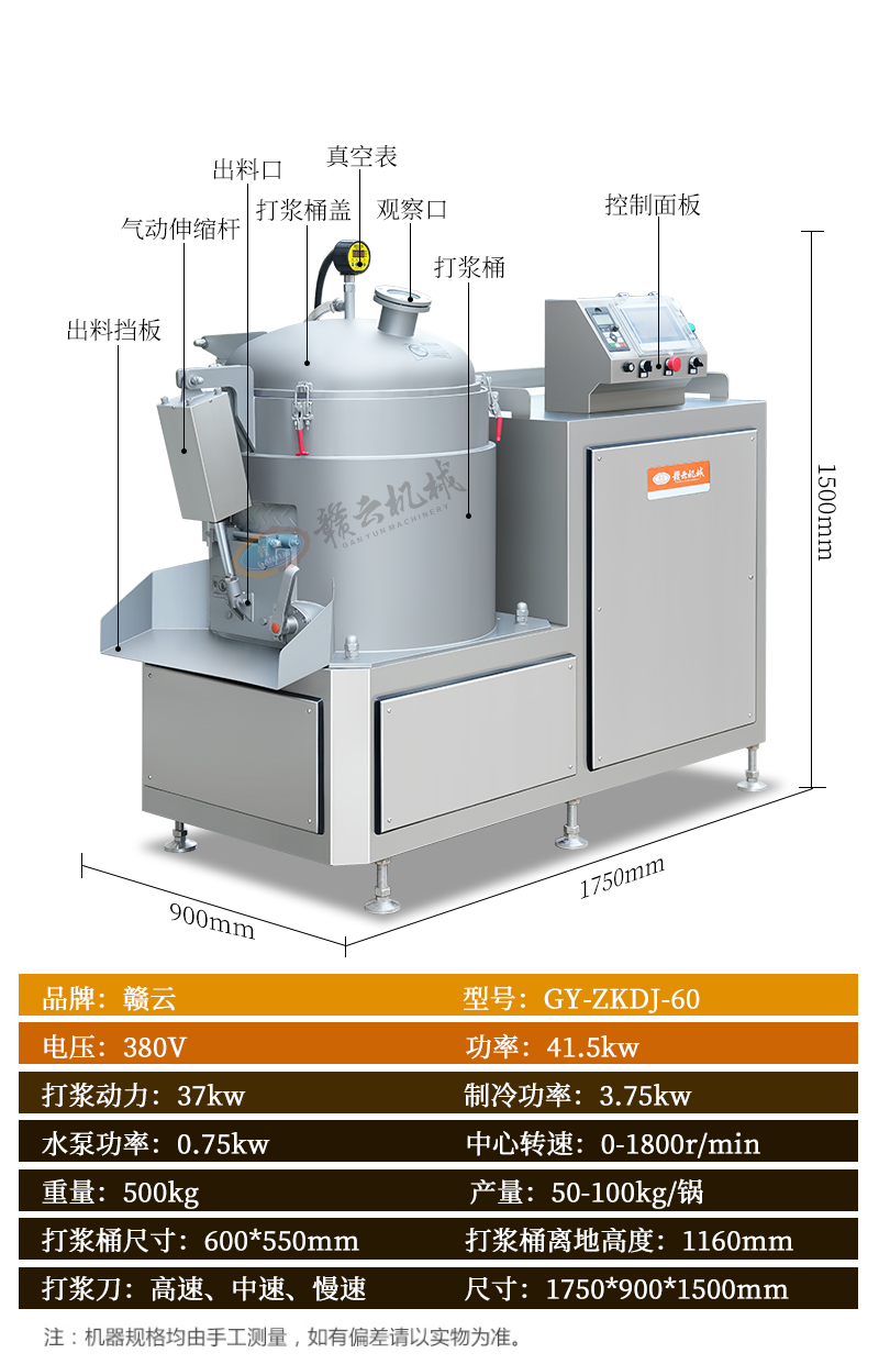 主頁-> 肉丸打漿機械->調速打漿機->真空三速制冷打漿機