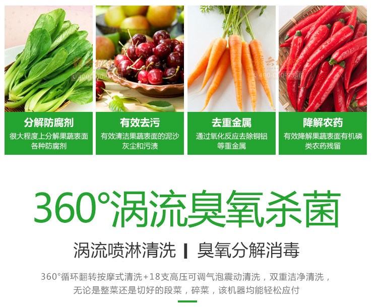 也是用于對蔬菜的清洗工作,可以對完整的或者切割過的菜進行旋渦臭氧雙重清洗,達到快速清洗的效果。
