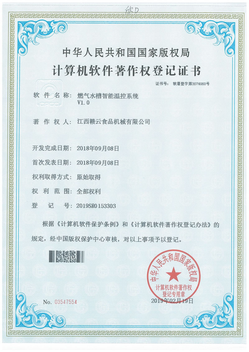計算機軟件著作權登記證書(燃氣水槽智能溫控系統)