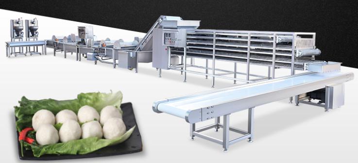 肉丸生產線由肉丸成型機、肉丸脫水機、制冷打漿機、絞肉機、油炸機或熟化機等組成。單臺肉丸成型機的生產能為200-300個每分鐘,一條肉丸生產線上將使用多臺肉丸成形機。我廠可以根據您的要求定制不同產量的肉丸生產線。