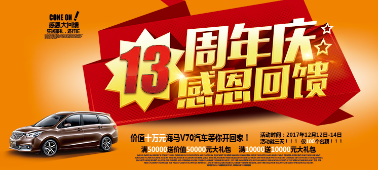 買10000送10000,買50000送50000。還有汽車等你開回家;顒尤掌趦H限三天(12月12/13/14日),名額僅限前100名。交500元誠意金即可參加活動排隊搶購,誠意金可抵貨款,沒搶到就退還哦。