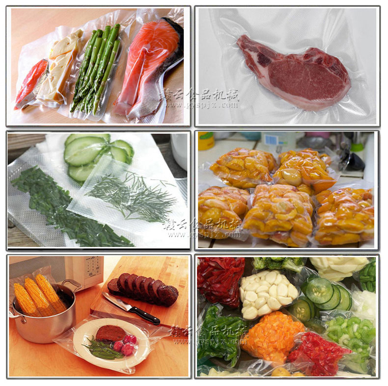 另外,有許多食品不宜采用真空包裝,而必須采用真空充氣包裝。如松脆易碎食品、易結塊食品、易變形走油食品、有尖銳棱角或硬度較高會刺破包裝袋的食品等。食品經食品真空包裝機真空充氣包裝后,包裝袋內充氣壓強大于包裝袋外大氣壓強,能有效地防止食品受壓破碎變形,并不影響包裝袋外觀及印刷裝潢。